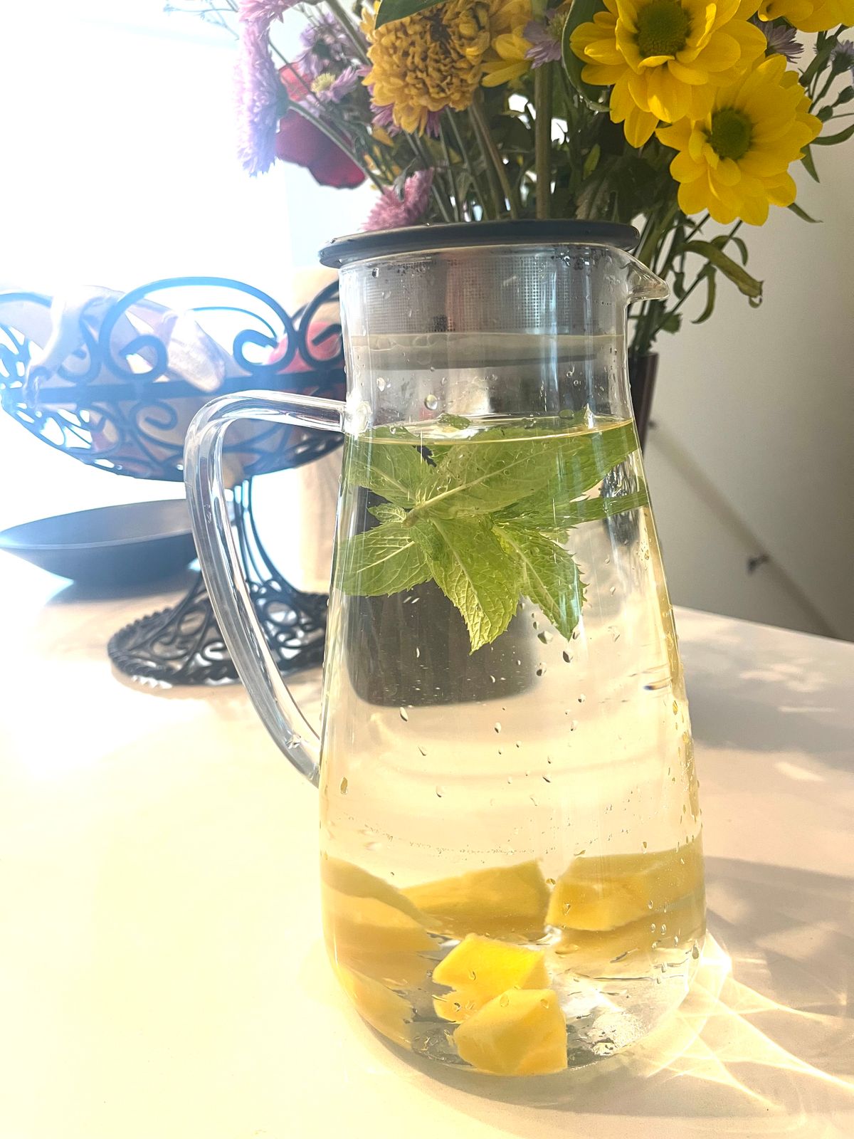 Stay Hydrated! We're often more active in the summer, and naturally need to drink more, but as we age our "thirst detector" gets diminished and we often get way behind on our water intake. I like to keep a pretty pitcher of spa-water on my counter, and I make sure to drink the whole thing every day. Seeing it there reminds me to drink. Some spa-water combinations to try: